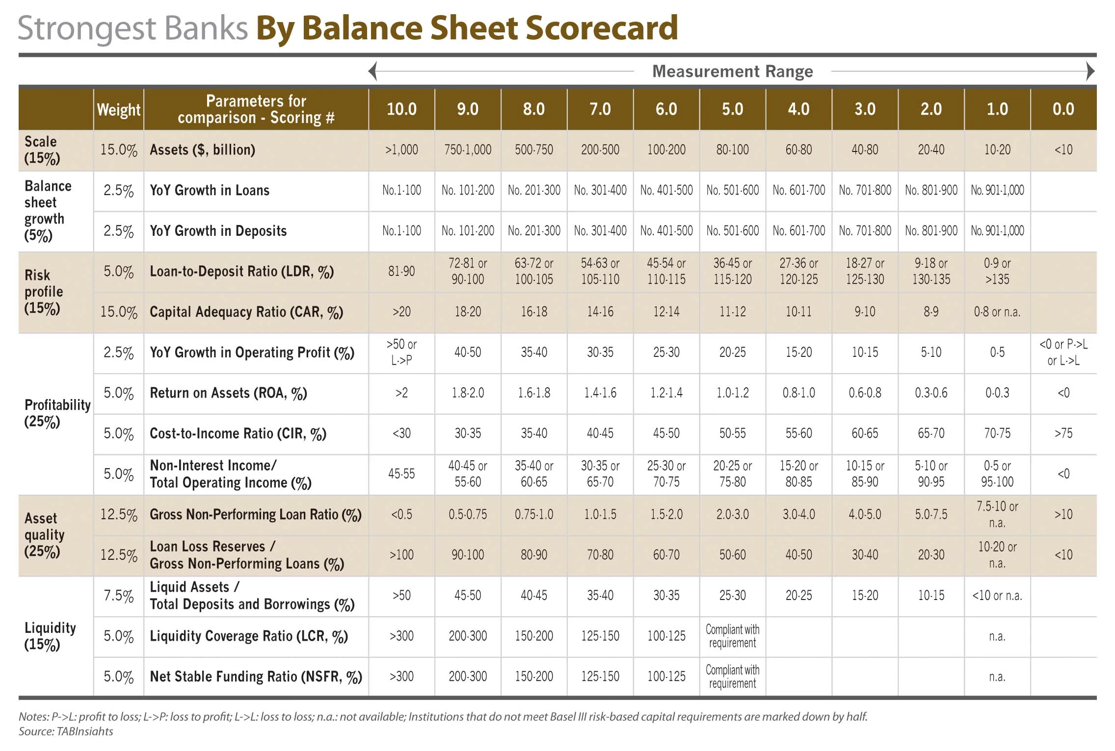The rankings are based on a detailed and transparent scorecard, evaluating banks and financial holding companies according to six key criteria related to balance-sheet performance, with a focus on financial strength and sustainability. These criteria include scale, balance-sheet growth, risk profile, profitability, asset quality, and liquidity, covering 14 specific factors.