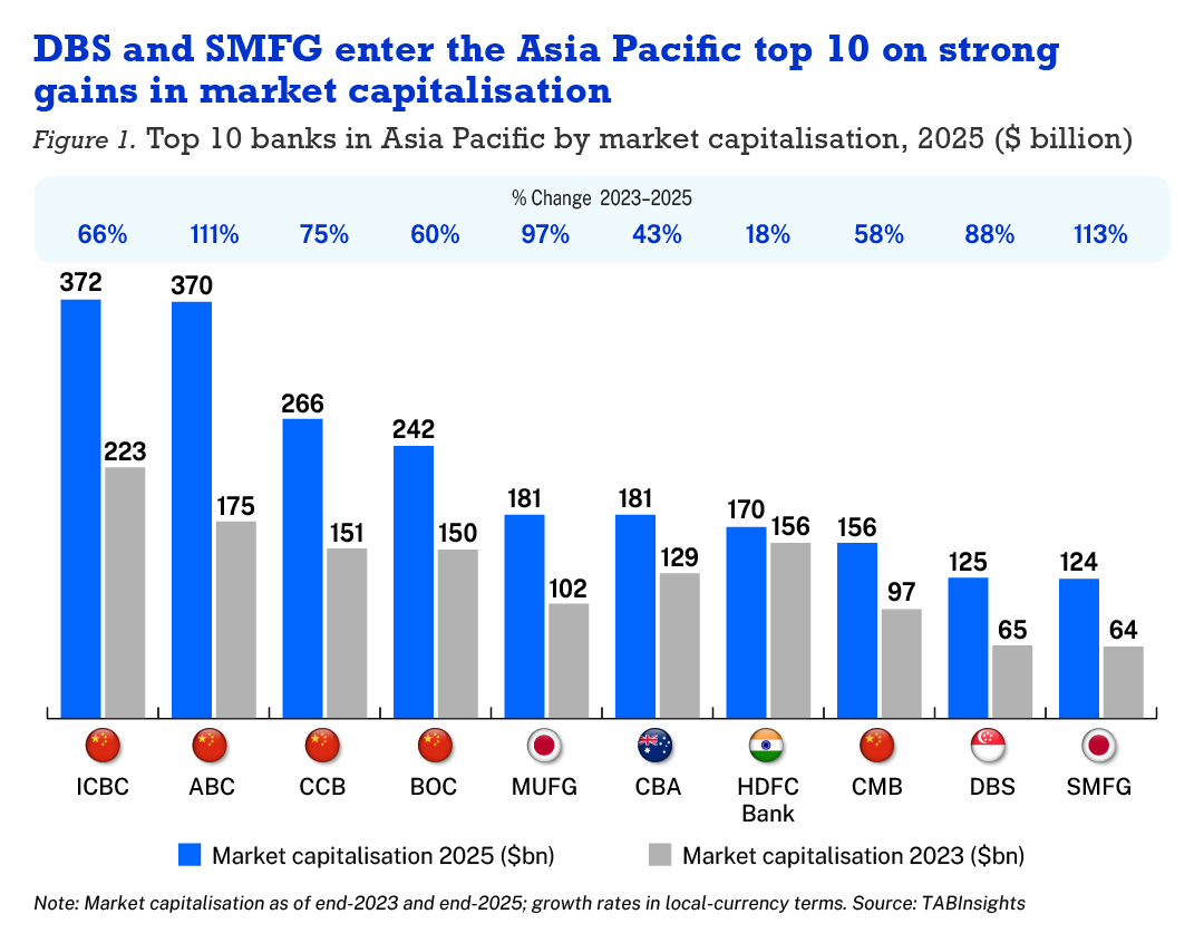 Asia Pacific banks delivered strong gains in market capitalisation between 2023 and 2025, with the combined value of the region’s top 30 banks rising from $2.3 trillion to $3.5 trillion. Improved earnings, resilient economic conditions and capital inflows supported the rally, though performance varied significantly across markets.